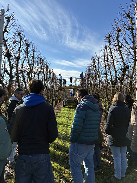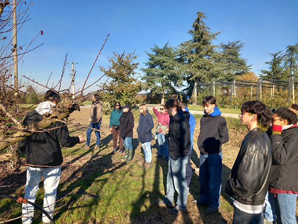 Gli studenti, accompagnati dal referente aziendale, hanno avuto l’opportunità di confrontarsi su diversi aspetti produttivi e di visitare frutteti specializzati di melo, albicocco, pero, actinidia e susino, osservando direttamente anche le operazioni di potatura invernale
